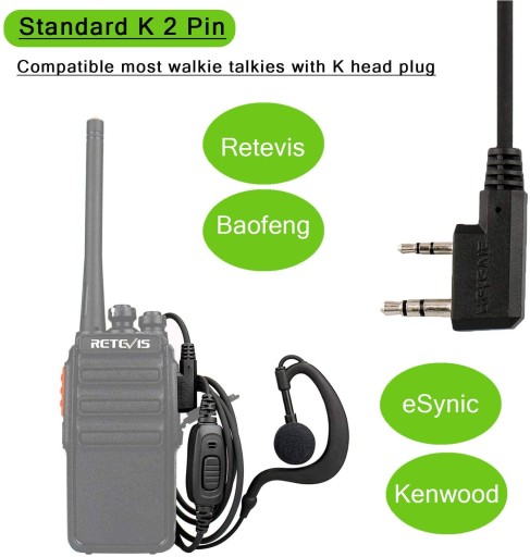 Retevis Dwukierunkowe słuchawki radiowe, zestaw słuchawkowy radiowy 2-pinowy typ C kompatybilny z BF-88E eSynic bf-888S Retevis RT24 RT27 RT28 H77 RT619 Kenwood Proster Radioddity, Walkie Talkie zestaw słuchawkowy z mikrofonem (10 szt.)