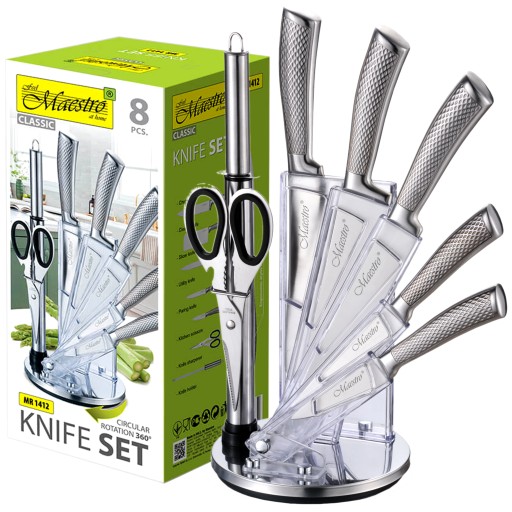 Zestaw noży Maestro do zaprojektowane z wielką dokładnością precyzyjne narzędzia do pracy w kuchni. Wykonane zostały z wysokiej jakości stali nierdzewnej, co zapewnia wytrzymałość i trwałość przez długie lata.