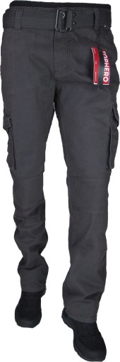 Bojówki stretch kieszenie Szare Z PASKIEM Proste