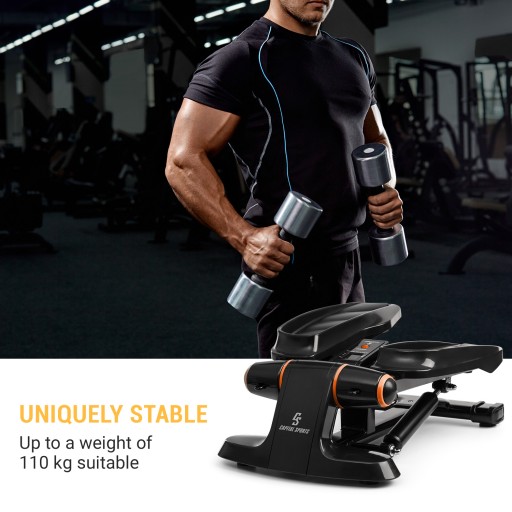 Dane dotyczące osiągów, takie jak zużycie kalorii i ilość nadepnięć na pedały na minutę, można zobaczyć bezpośrednio na wyświetlaczu LCD komputera treningowego, a ustawiany timer pomaga w treningu dzięki możliwości ustawienia jego długości. Ponadto można skorzystać z bezpłatnej aplikacji FitShow do dokumentowania, zapisywania i udostępniania swoich wyników treningowych. Hydrauliczny układ absorpcji wstrząsów i duże pedały wysokiej jakości z gumową, antypoślizgową powłoką zapewniają bezpieczeństwo i stosowną amortyzację podczas stąpania w celu ochrony stawów i ścięgien. Ze względu na wyjątkowo duże pedały i solidną konstrukcję ministepper Galaxy Step nadaje się bez problemu dla osób o wadze do 120 kg i trenujących w dowolnych butach treningowych.