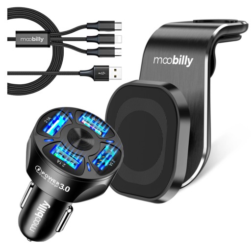 Mocna ładowarka samochodowa Moobilly 3x gniazdo 2.1A/5V, 1x gniazdo 3A/5V ; 2A/9V; 1.5A/12V