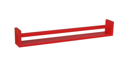 Długa wisząca półka drewniana z ogranicznikiem w kolorze czerwonym.