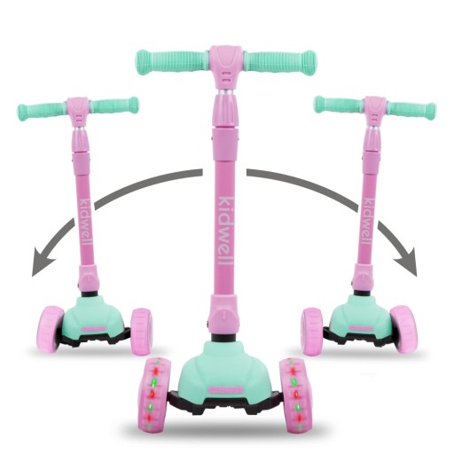 Kidwell Jax hulajnoga trójkołowa w kolorze różowo-miętowym. Wykonana z materiałów wysokiej jakości. Znakomicie sprawdzi się podczas zabawy na świeżym powietrzu. Posiada regulowaną wysokość kierownicy, co pozwala idealnie dopasować ją do dziecka.