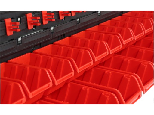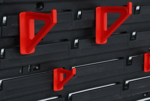 Niezwykle praktyczne zestawy, wyposażone w kubeczki na elementy drobnicowe oraz uchwyty i wieszaki, pozwolą zachować przejrzystość i ład w akcesoriach narzędziowych i magazynowych. Tablice posiadają otwory montażowe, zapewniające szybki i łatwy montaż na ścianie.