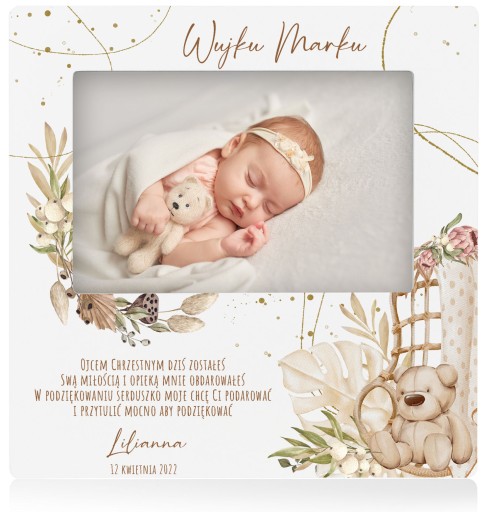 Ramka w takiej postaci pełni funkcję podziękowania dla rodziców chrzestnych za obecność podczas przyjmowania sakramentu Chrztu Świętego.