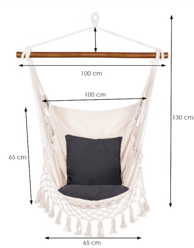 Zdecydowanym atutem jest wykonanie z naturalnych materiałów w tym bawełny i drewna, które gwarantują nienachalny wygląd i maksymalną przepuszczalność powietrza. Lekki a jednocześnie wytrzymały materiał idealnie dopasowuje się do ciała. Zapewnia pełen relaks, w naturalnej, niewymuszonej pozycji. Kolorystyka i frędzle w stylu boho, trafiają idealnie w najnowsze trendy.