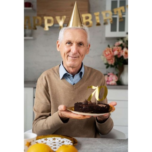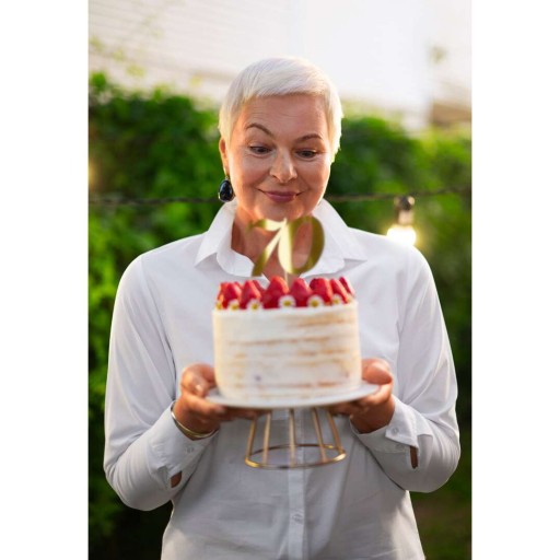 Topper na 70 urodziny jako idealna dekoracja na tort w kolorze złotym metalicznym, który podkreśli doniosłość tego dnia. Precyzyjne wykonanie i lustrzane wykończenie sprawiają, że dekoracja na tort liczba 70 prezentuje się niezwykle efektownie na każdym wypieku. Lekka, ale trwała konstrukcja pozwala na łatwe umieszczenie w torcie bez ryzyka uszkodzenia.
