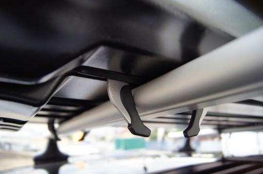 - System FastClick - Niepowtarzalny system mocowań firmy Thule, które pozwalają na montaż boxu dachowego w kilkadziesiąt sekund — bez trudu i bezpiecznie. Szczęki mocowań zaciskają się na belce bazowej bagażnika podczas dokręcania pokrętła wewnątrz boxu. Równocześnie samoczynnie centrują się na belkach, co zapewnia maksymalne bezpieczeństwo i łatwość obsługi. Pasuje do belek bazowych do szerokości 85 mm.