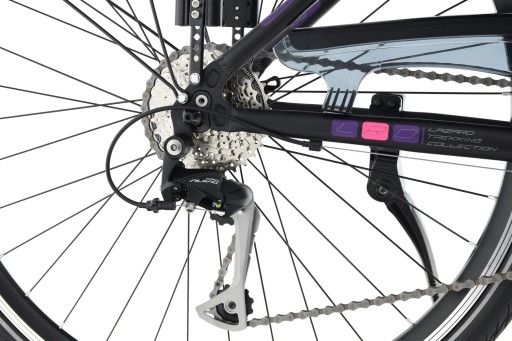 Mocna przerzutka Shimano grupy ALIVIO zapewniająca sprawne i dokładną zmianę przełożeń. Wyposażona w technologię DUBLE SERVO, która utrzymuje kółko prowadzące tylnej przerzutki w optymalnej odległości od każdego koła zębatego. Dzięki temu zmiana przełożeń jest dokładna. Przerzutka posiada długi wózek SGS, zwiększający elastyczność napędu. Dodatkowe wyposażenie przerzutki w technologię HYPERGLIDE dla współpracy z kasetą, w celu zapewnienia wydajnej zmiany przełożeń.