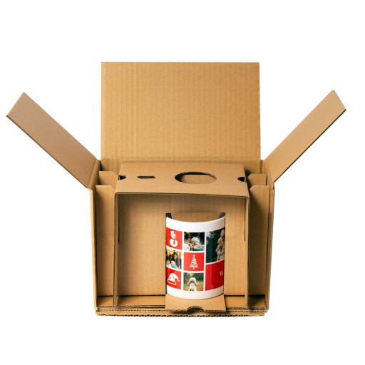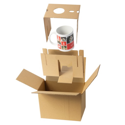 Kubki pakujemy w kartoniki składające się z 3 elementów (warstw) zapewniających amortyzację podczas transportu przesyłki - zminimalizuje to ryzyko przemieszczania się zawartości paczki.