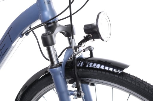 Za precyzyjną zmianę 21 biegów odpowiada komplet klamkomanetek Shimano ST-EF41, przerzutka przedniej Shimano Tourney FD-TY300, tylna Shimano Altus RD-M310 oraz Wolnobieg 14-28T 7rz. Ponad to rower wyposażony został w mocne 28 calowe koła z oponami Deestone o szerokości 35mm, które charakteryzują się relatywnie niskimi oporami toczenia oraz zapewniają odpowiednią trakcję. Za hamowanie odpowiadają hamulce V-Brake Promax dysponujące dużą siłą hamowania, co pozwala na szybkie zatrzymanie roweru w nagłej potrzebie. Komfort jazdy zapewniają regulowany mostek kierownicy, amortyzowany widelec oraz wygodne siodło Selle Royal. Bogate wyposażenie tj. bagażnik, błotniki, stopka oraz osłona łańcucha ułatwiają codzienne korzystanie z roweru w każdych warunkach.