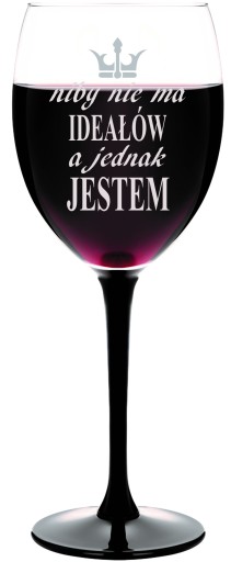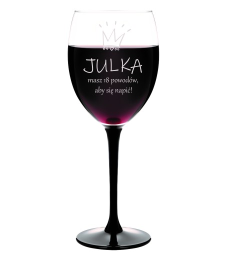 Eleganckie kieliszki do wina z grawerem i czarną stopką.