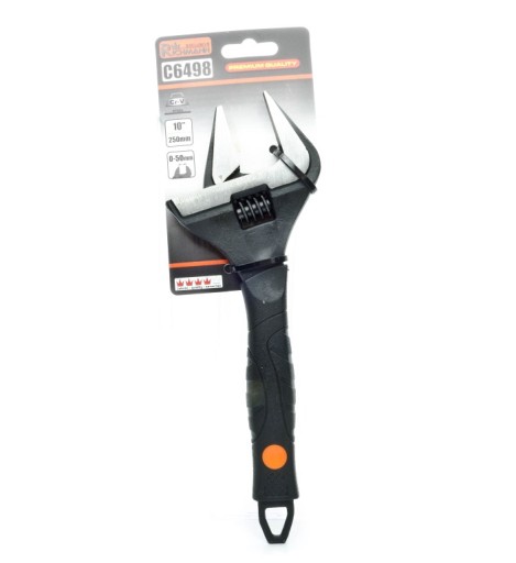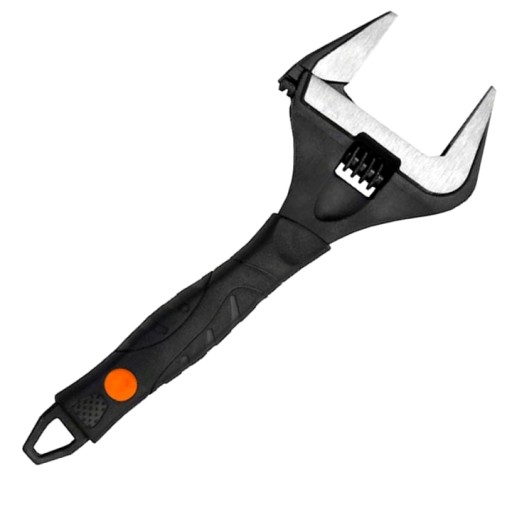Klucz nastawny z poszerzonym zakresem rozstawu szczęk (w stosunku do standardowych w tym rozmiarze).