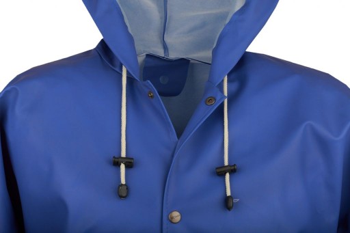 Płaszcz zapinany na napy, z kapturem i dwiema bocznymi kieszeniami przykrytymi patkami. Model produkowany z wodoochronnej tkaniny Plavitex, przeznaczony do użytku w niesprzyjających warunkach pogodowych. Zapewnia skuteczną ochronę przed wiatrem i deszczem. Technika obustronnego zgrzewania zwiększa wytrzymałość szwów. Produkt spełnia standardy europejskich norm: EN ISO 13688 i EN 343.