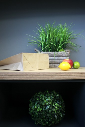 Torby papierowe z uchwytem płaskim wykonane są z brązowego papieru KRAFT, uchwyty toreb klejone wewnątrz toreb.