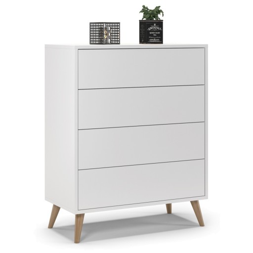 OSLO 02 комод, скандинавский стиль БЕЛЫЙ/ДУБ 4 ящика Tip On
