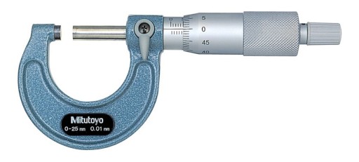 Mikrometr analogowy do pomiarów zewnętrznych o zakresie pomiaru 25-50 mm oraz podziałce 0,01 mm. Powierzchnię pomiarową mikrometru wykonano z węglika spiekanego. Przyrząd posiada bęben oraz tuleję matowo chromowane. Wyposażony jest w blokadę wrzeciona. Jego zaletą jest bardzo lekka konstrukcja.