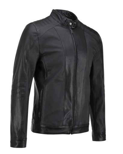 Kurtka skórzana Hugo od firmy Tomskór została wykonana z wysokiej jakości skóry naturalnej. Nowoczesne wzornictwo na klasycznym fasonie sprawia, że kurtka jest niezwykle oryginalnym okryciem wierzchnim. Połączenie tłoczeń z gładkimi elementami z czarnej skóry wyróżnia ten model spośród innych dostępnych na rynku. Kurtka skórzana męska Hugo posiada niską stójkę zapinaną na nap, przeszycia na ramionach oraz rękawach.