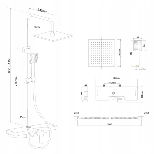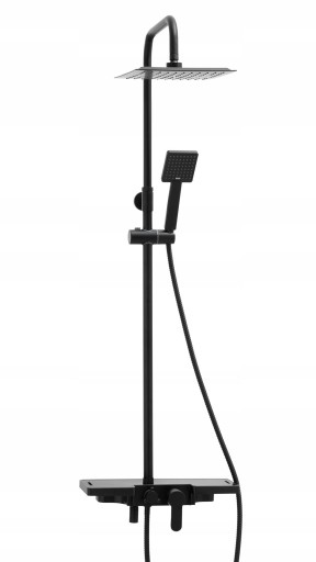 Zestaw natryskowy z półką i deszczownicą 25 cm - czarny