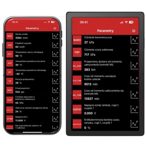 - Monitorowanie parametrów pracy silnika w czasie rzeczywistym - LIVE DATA