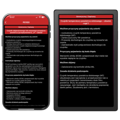 - Odczyt kodów błędów ogólnych i charakterystycznych producenta
