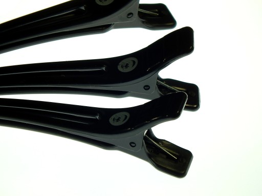 Profesjonalne klipsy do włosów, posiadają ząbki dla mocniejszego trzymania włosów oraz mocne sprężyny, które dobrze przytrzymują pasma włosów.