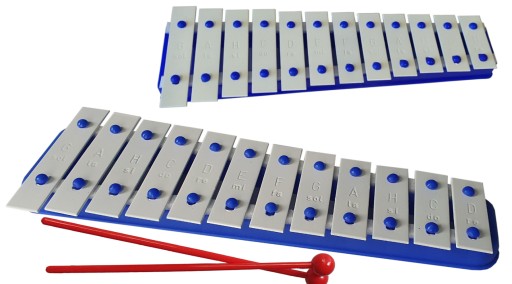 Opakowanie zawiera 12-tonowe cymbałki oraz 2 plastikowe pałeczki.