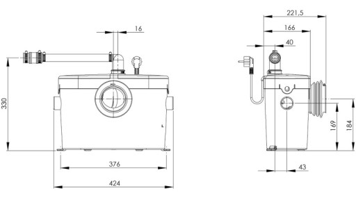 min.poziom scieków uruchamiający pompę: 95 mm+/-15 mm