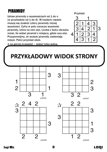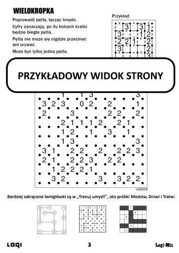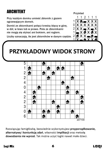 Zbiór łamigłówek dla miłośników inteligentnej rozrywki. Wśród nich obrazki logiczne, krzyżówki liczbowe, sudoku, piramidy, wielokropki, architekty, lampki, zadania logiczne.