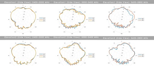 7,5 dBi to szczytowe wzmocnienie we wszystkich pasmach 2400–2500 i 5000–5800 MHz