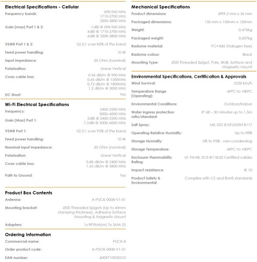 A-PUCK-0008-V1-01; Niskoprofilowa antena dookólna Poynting PUCK-8