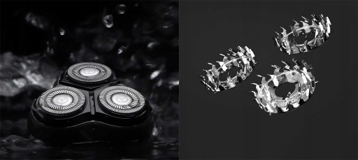 Maszynka ma trzy zestawy niezależnie pływających głowic tnących, które zapewniają o jedną trzecią więcej miejsca do golenia niż zwykła maszynka z podwójną głowicą, aby dopasować się do różnych konturów twarzy.