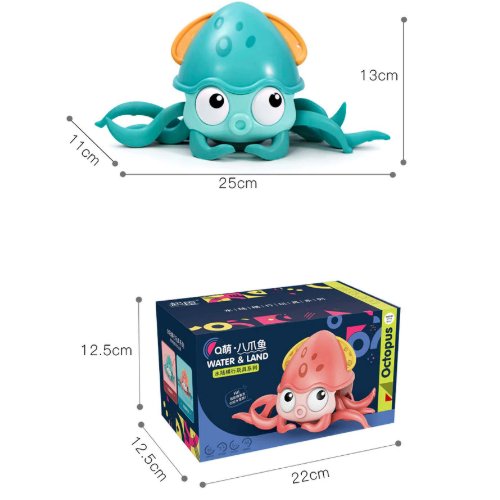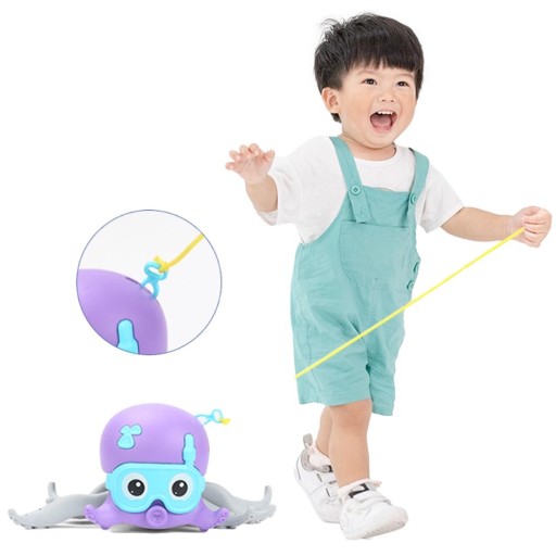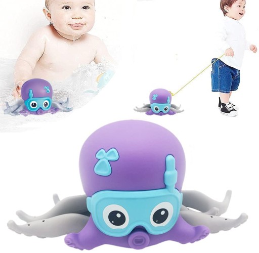 Wspaniała ruchoma zabawka , która do działania nie wymaga baterii. Zabawa może się odbywać w wannie jak i zarówno na podłodze. Jest jeszcze trzecia opcja ,przywiązanie sznureczka i dzieciaczek może ciągnąć ośmiorniczkę za sobą wprawiając w ruch jej długie macki.