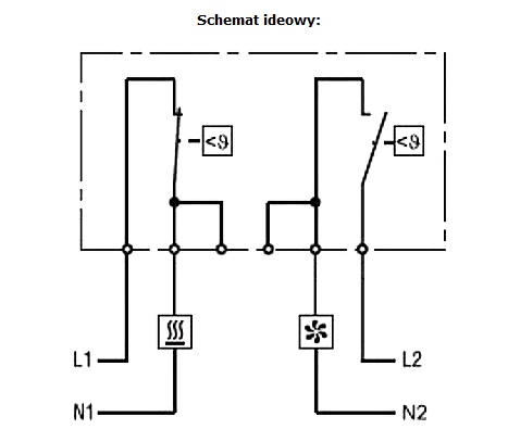 Podwójny termostat ZR-011 posiada dwa niezależnie sterowane tory prądowe.
