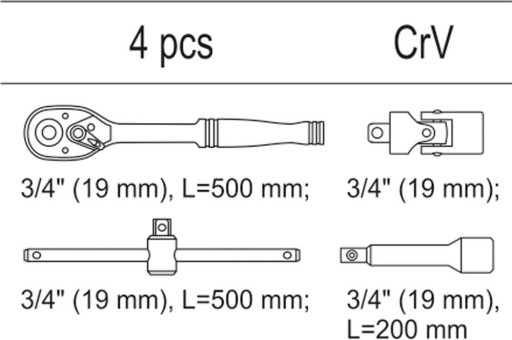 - grzechotka 3/4” (19.0 mm); (500 mm); 72T; CrV 6140