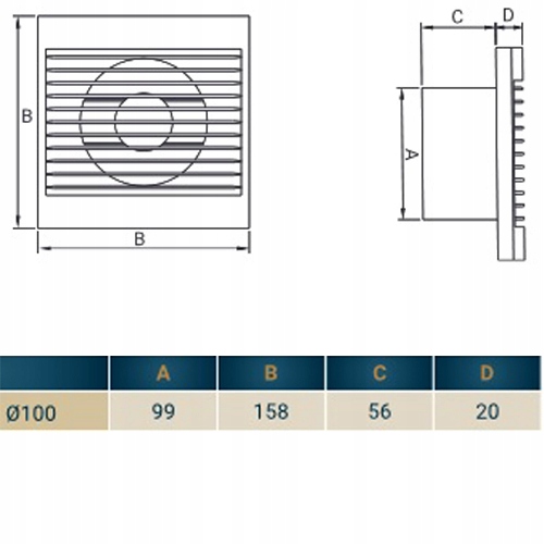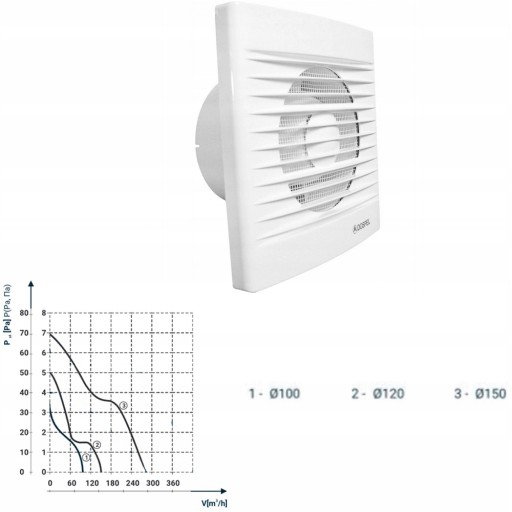 Wentylator domowy ścienny z czujnikiem wilgoci i wyłącznikiem czasowym Fi100