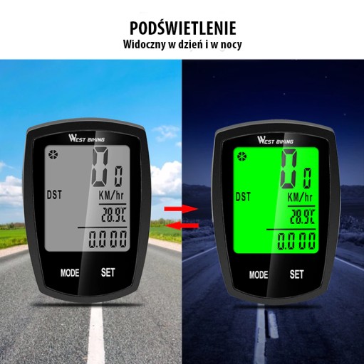 - ⭐️ PODŚWIETLANY WYŚWIETLACZ – idealnie sprawdzi się przy wieczornej lub nocnej jeździe. Podświetlenie włączy się automatycznie po włączeniu licznika oraz po zmroku gdy zadziała czujnik zmierzchu. Wyświetlacz podświetla się na kolor zielony.
