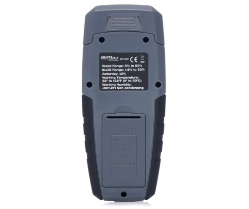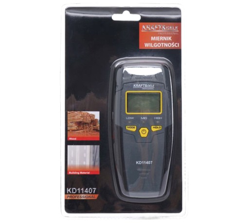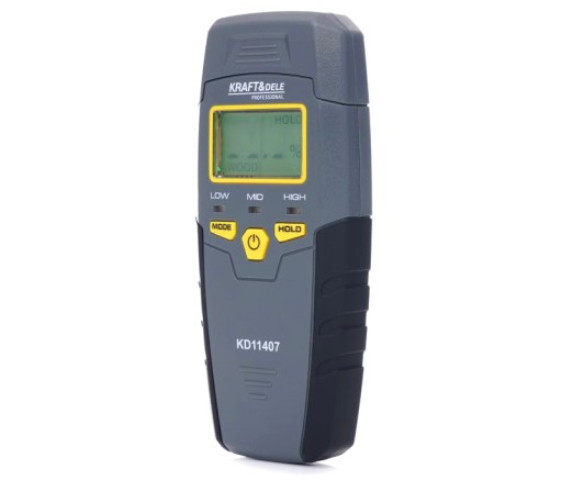 Miernik wilgotności marki Kraft&Dele Model KD11407 mierzy zawartość wilgotności, wykrywając rezystywność elektryczną materiału docelowego za pomocą dwóch pinów.