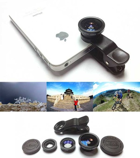 Zestaw trzech obiektywów pasujących do większości telefonów, tabletów dostępnych na rynku takich marek jak: Iphone, Samsung, LG, Nokia, Sony, Huawei, Motorola, HTC oraz wiele, wiele innych. Przed zakupem należy jednak upewnić się, czy odległość obiektywu kamery od krawędzi urządzenia nie przekracza 25mm.