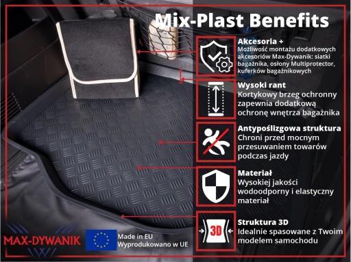 Przedmiotem oferty jest mata (dywanik) do bagażnika wykonana z tworzywa sztucznego firmy MIX-PLAST przeznaczona do samochodu: