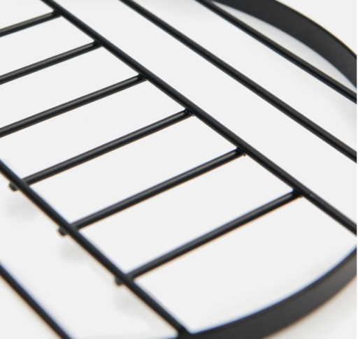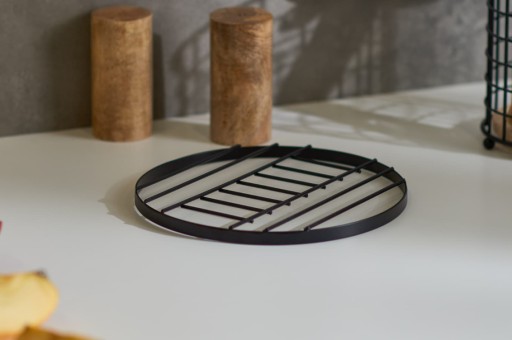 Metalowa podkładka w kolorze czarnym pod gorące naczynia, która zapobiega uszkodzeniu powierzchni.