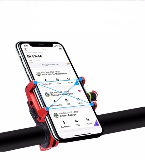 - łatwe zamocowanie urządzenia GPS lub telefonu ze względu na rozciąganie się łap uchwytu