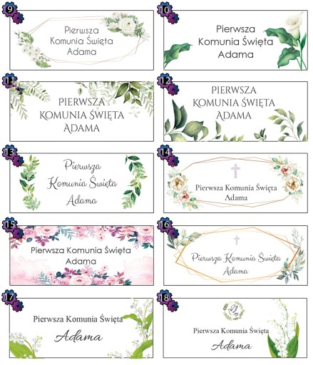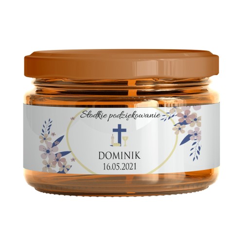 Przedmiotem aukcji jest zestaw 10 naklejek na MIODY KOMUNIJNE, do wyboru w obrębie jednego z dostępnych wzorów.