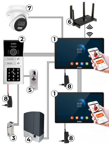 ✅ 2 x Monitor wewnętrzny 5tech Verus One Plus 8" w kolorze czarnym umożliwiającego sterowaniem furtki i bramy, podgląd obrazu z kamery oraz zdalnym dostępem poprzez aplikację na smartfonie