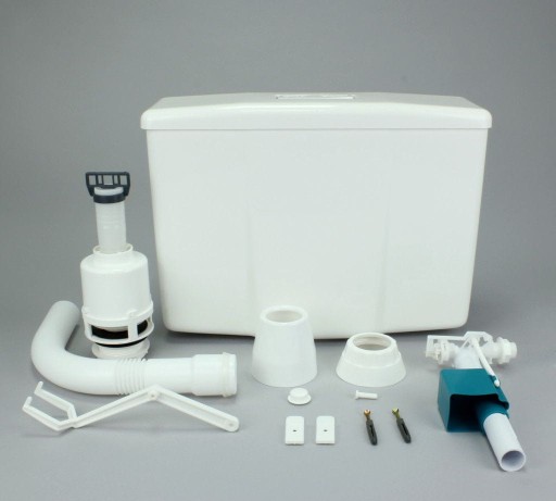 Spłuczka 95K wykonana jest z polipropylenu. Model ten jest nisko zawieszony, wyposażony w klawisz Start-Stop, który umożliwia kontrolę ilości spłukiwanej wody. W komplecie dołączone regulowane kolano dolnopłuka.