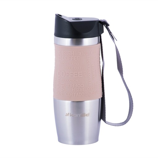 Kubek termiczny 380 ml ze stali nierdzewnej z powłoką antypoślizgową i paskiem KAMILLE KM-2052
