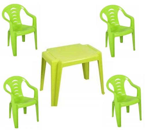 Wspaniały plastikowy zestaw dla dzieci stolik + 4 krzesełka.