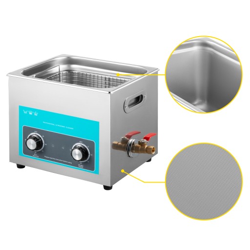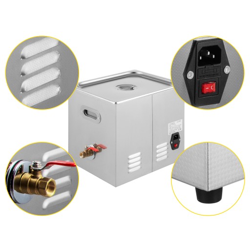 Jest to wysokowydajna myjka ultradźwiękowa stosowana do codziennych lub profesjonalnych prac porządkowych. Wyemituje falę ultradźwiękową 40 KHZ, aby głęboko zmyć brud z powierzchni kosztowności, długiej dziury, szczeliny i schronienia. Dzięki funkcji podgrzewania i odmierzania czasu używaj tylko wody z taśmy, w razie potrzeby niektórych roztworów, twoje rzeczy można dokładnie wyczyścić w ciągu kilku minut. Bez zadrapań, idealne do biznesu, komercyjnego lub domowego.
