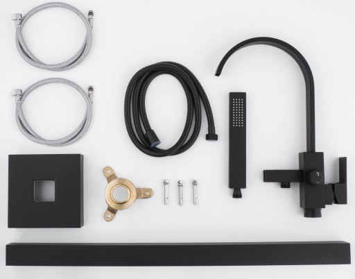 Wysokiej jakości bateria wannowa z kompletem natryskowym w stylu minimalistycznym.
