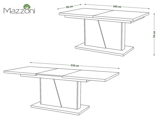 - przy pomocy jednej 58 cm wkładki, stół można powiększyć do 218 cm!
